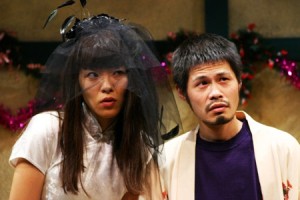 ケチでやくざな男の部屋。クリスマスイブ、前世で男に捨てられた花嫁の亡霊があらわれた。