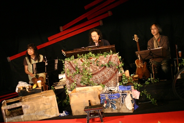《あらすじ》 初演のあれから12年間、珠代はあの公園で今も同じ夢を見続けている。 12年前のあの公園、今夜も彼女(珠代)がいる。 外灯の下。ホームレスらしき初老の女(珠代)は、ダンボールに座り込んでクロスワードゲームをしている。 雨が降りそうな気配。 「夫はアジアへ長期出張し、娘と息子は、外泊したまま帰ってこない家庭の主婦」「港町の外人バーに育ちそこで生きてきた女」・・珠代の中で二つが交叉する。 真実はどちらか?と問うても詮無いこと、夢想の中での生活であろうとも生活したと言う記憶は珠代の心でその鮮やかな二色の糸はタペストリーとなって残っていた。 であるならどちらも真実であろう。夢想であってもだ。珠代は確かにそこに生きたのだから。。 はたして迷い込んできたサラリーマンも珠代の見た幻だったのだろうか? 古い公園の精霊たちが、彼女のそんな妄想を今夜も食べに来た。 |