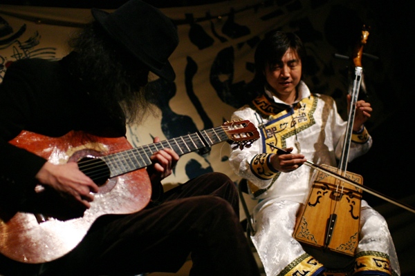 「上海キップ」にて、若き馬頭琴奏者 セーンジャーさんの出演が決定しました! 「スーホーの白い馬」や、映画「蒼き狼 地果て海尽きるまで」の音楽で知られるセーンジャーさん。 渡辺勝 ら、40CARATバンドとのコラボが実現しました。 ヨンさま似のセーンジャーさんに、劇団内では、人気沸騰! ^^
